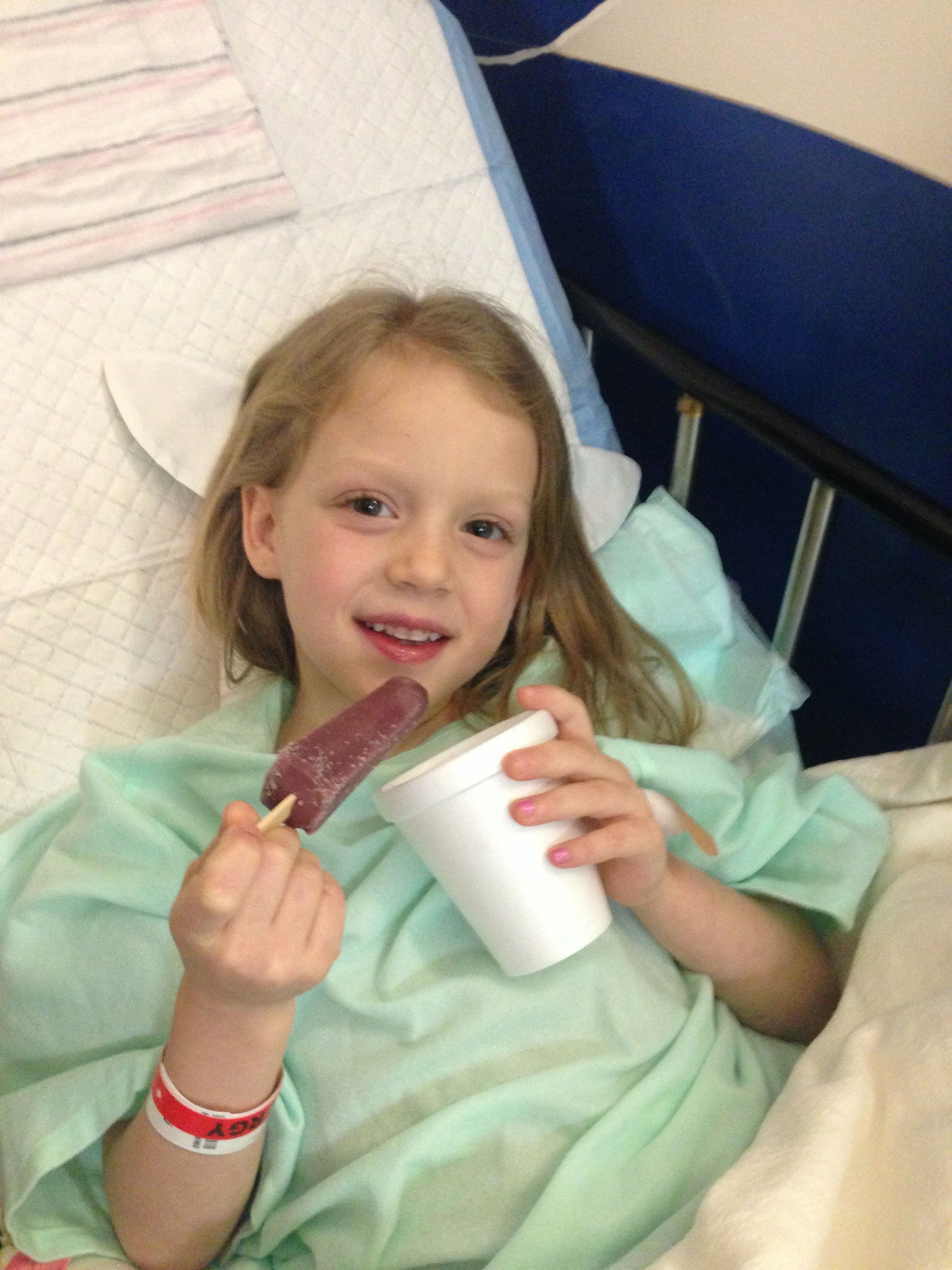Well, we’ve mostly been focused on Mary’s health problems for the last year. But Brie decided she’d like to take a dip and see what being under anesthesia is like herself. She’s had food allergies her whole life; but this last year they’ve been getting worse. We had a consultation with an allergist in December and because her response to her allergens is vomiting and a sore throat he wanted to refer us to a gastroenterologist. There’s a fairly new diagnosis in the gi field called eosiniphilic esophagitis. The allergist didn’t mention what he was concerned about to me, but after reading as much about pediatric gi problems as I had last year for Mary, I knew that was his concern. I had suspected Brie might have it myself when researching Mary’s feeding problems. Fast forward to today. Brie had her first endoscopy, not to be her last sadly. We’ll get the official biopsy results in a week or two but the dr said that from what he saw, he would be very surprised if the results didn’t confirm the diagnosis. If not controlled, eoe can lead to strictures in the esophagus and other complications. So going forward, we’ll likely have to do diet eliminations. While there are drug therapies we will also consider, we’re inclined to go about finding out the root of the problem. Apparently the most frequent culprits are soy, eggs, wheat, and milk. Unfortunately, the only way you can find out if you’ve controlled the allergies is with more endoscopies. This can easily mean 6-8 endoscopies, generally 6-8 weeks apart. With that facing us, it’s comforting that Brie was such a champ today. She had a sweet smile for everyone and when the nurses brought her back from recovery, they were quite smitten. We came home to a happy baby, which makes mama happy too. She doesn’t seem to mind letting her sister have some of the fun!