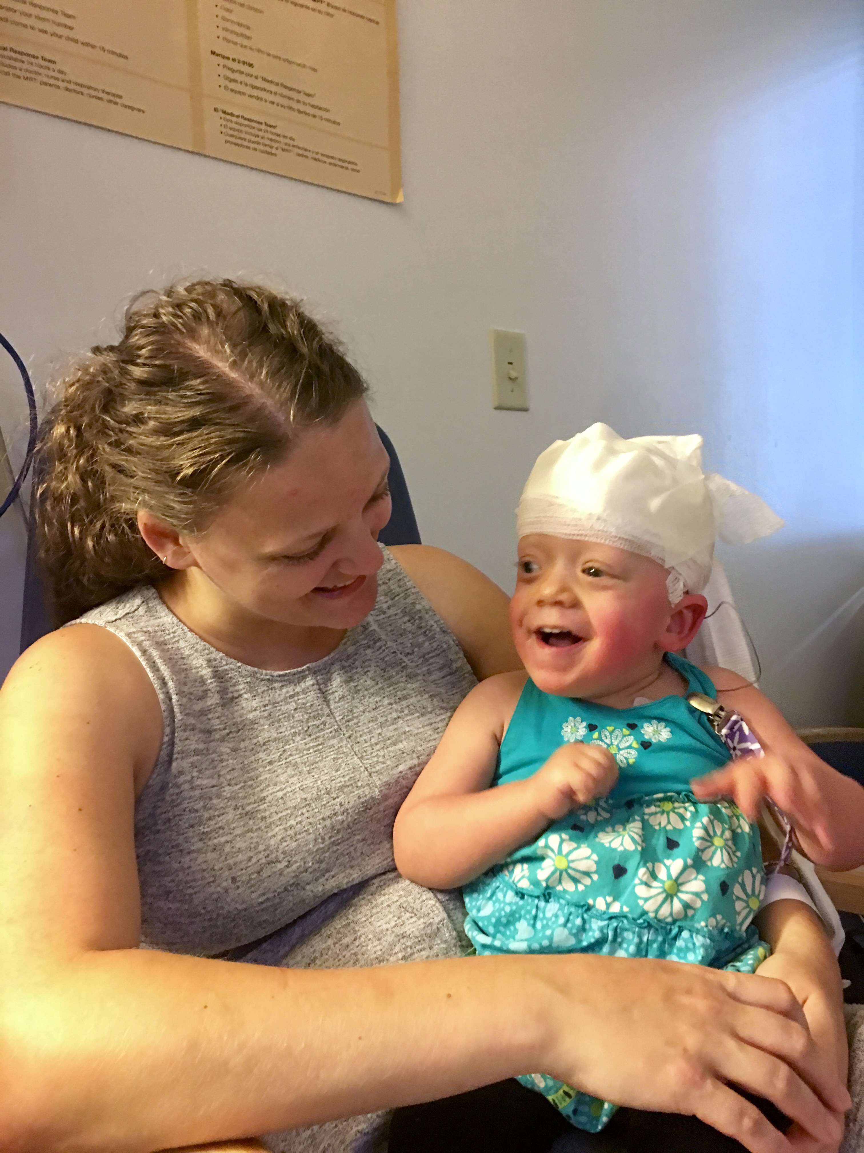 Don’t let the picture fool you. She was not impressed with the nice ladies who had to glue almost 50 electrodes to her head. We made it through, though, and she’s doing great.